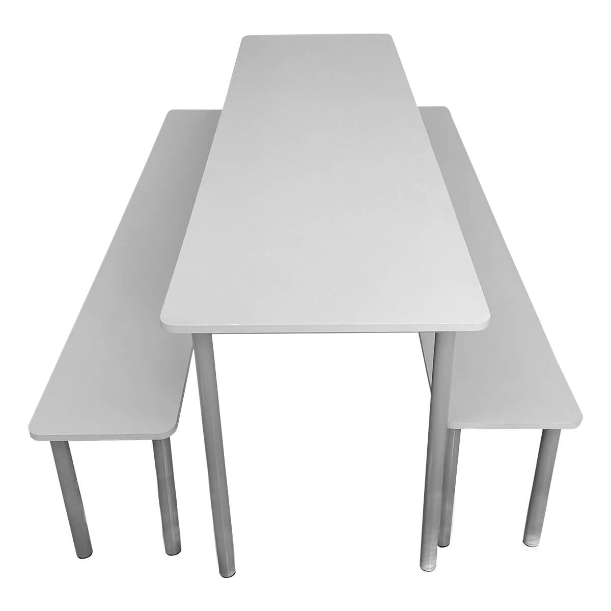 • Design Funcional: Prioriza a otimização do espaço, permitindo o alinhamento de várias unidades para criar fileiras ordenadas no refeitório.