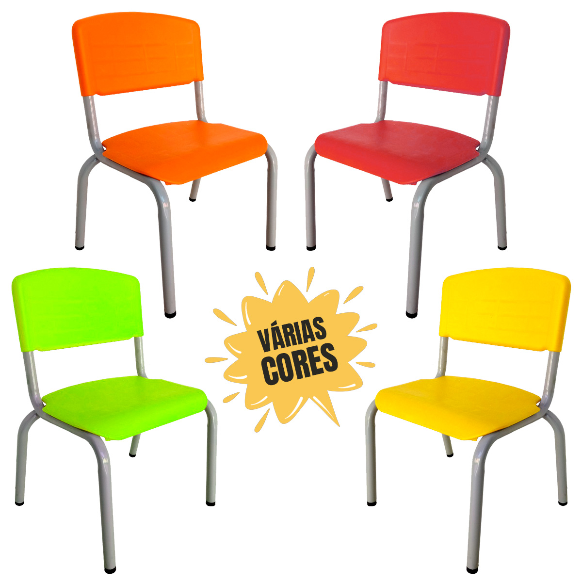 – Kit contém 04 cadeiras infantis empilháveis.