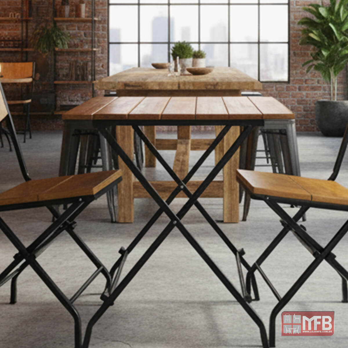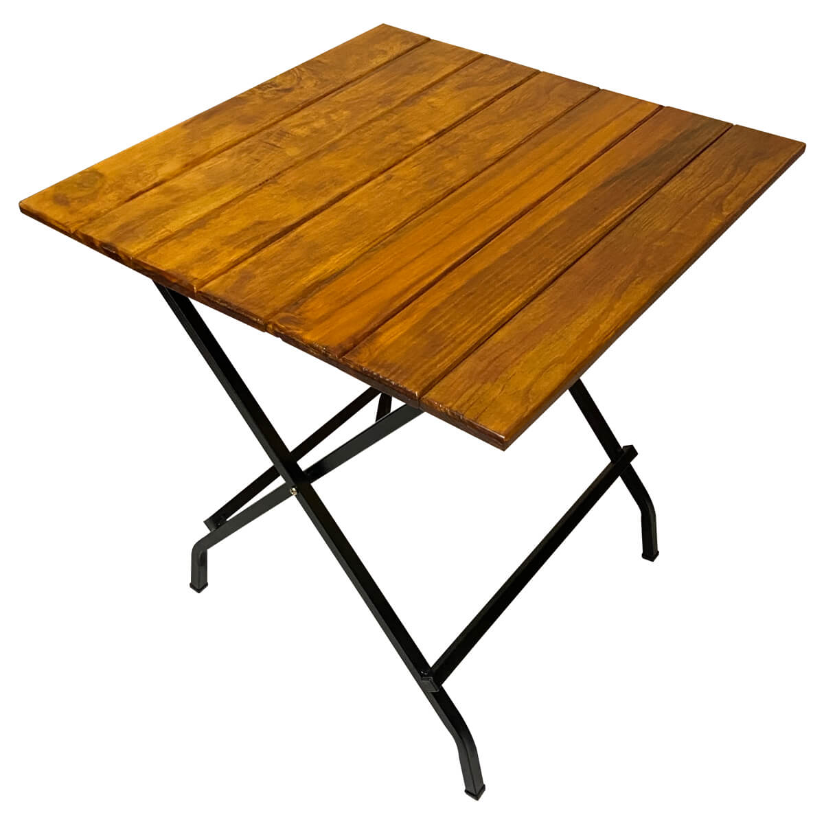 Maravilhosa Mesa Dobrável de estilo RIPADA 70x70cm com estrutura em aço e tampo em madeira maciça.